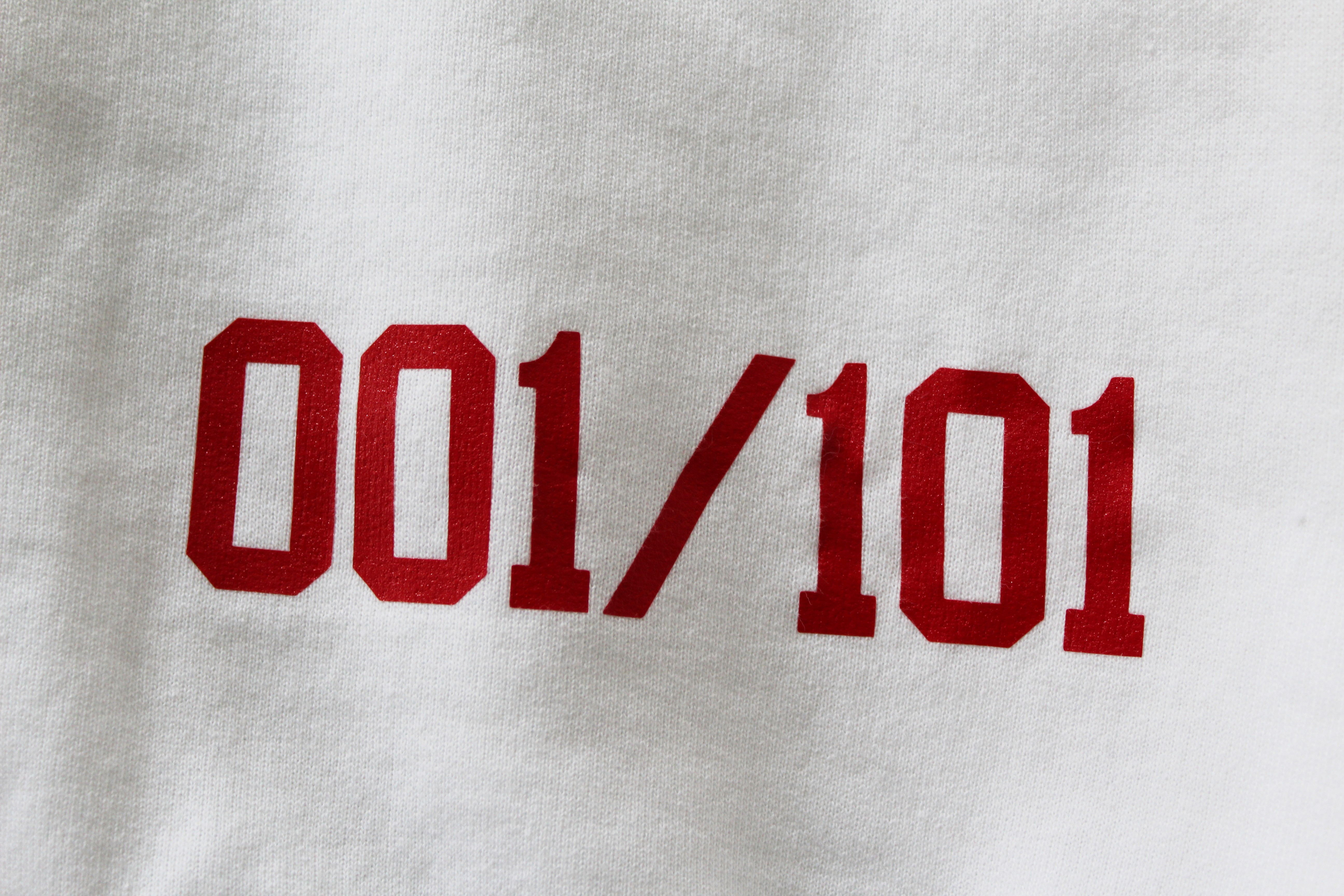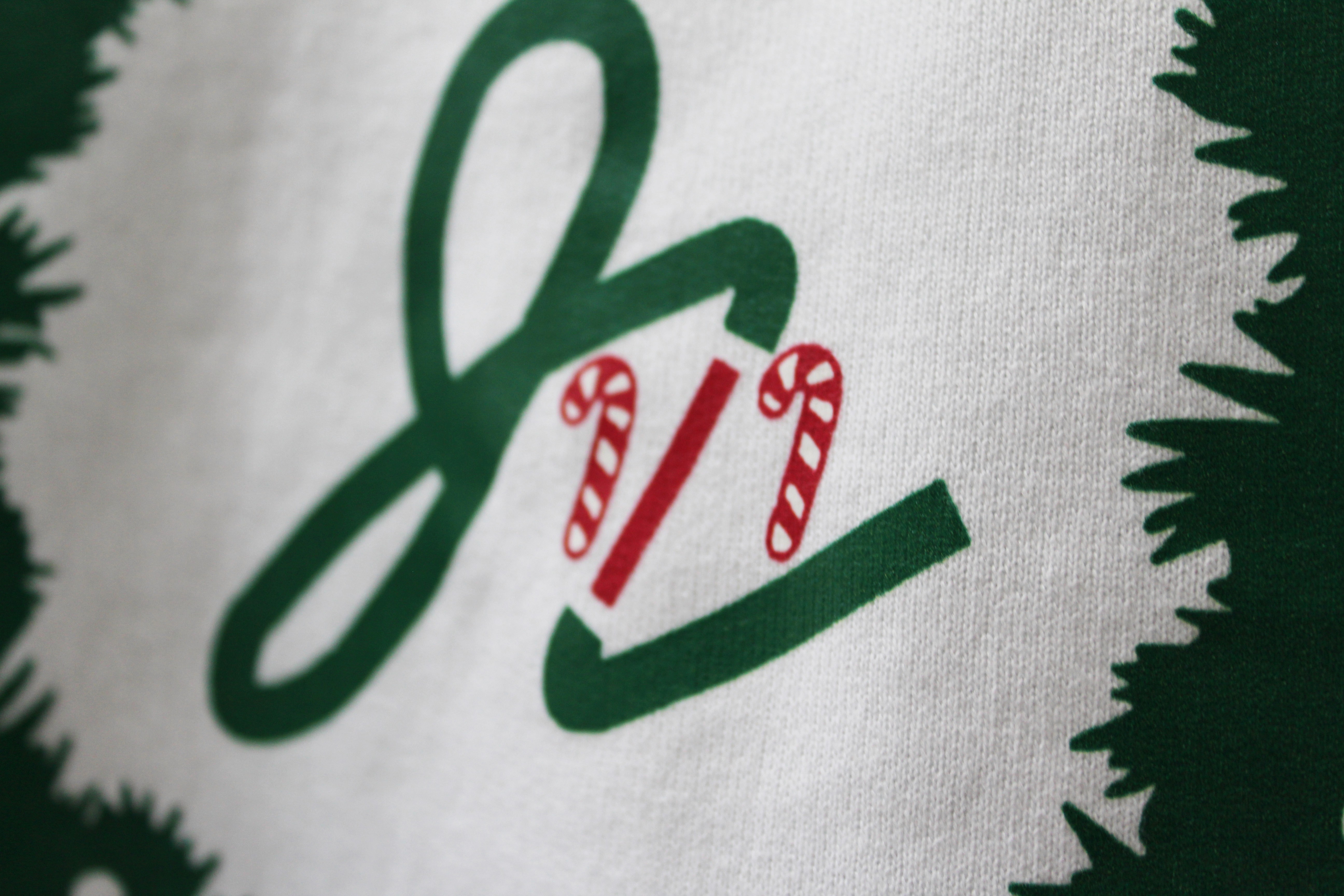 This cozy white holiday crewneck features a bold green wreath graphic with a red bow and the 1of1 holiday logo in the center. Candy cane 1's give the logo a festive, playful look. Limited-edition numbering “001/101” in red at the hem also gives the crewneck a unique, collectible feel.