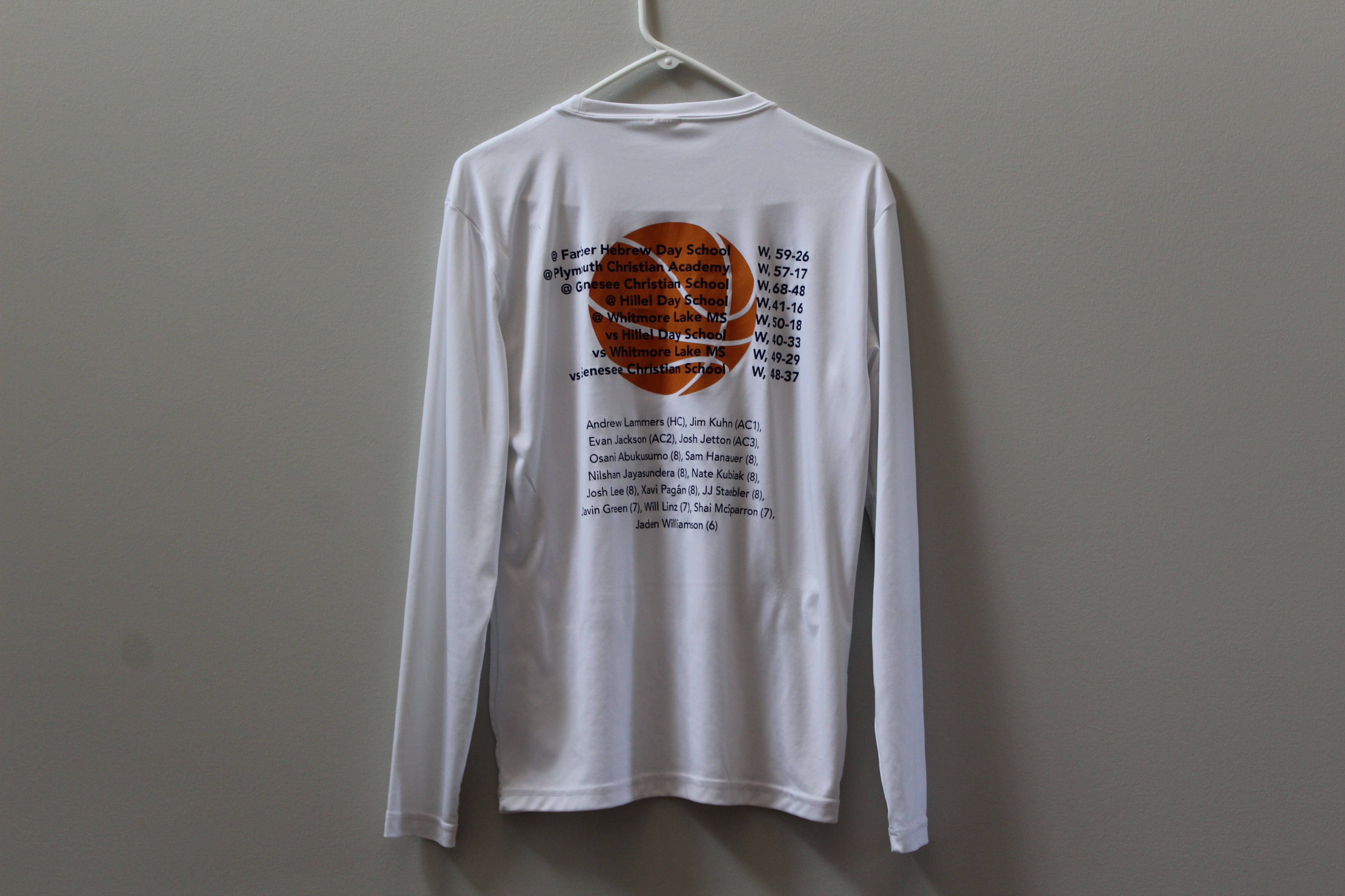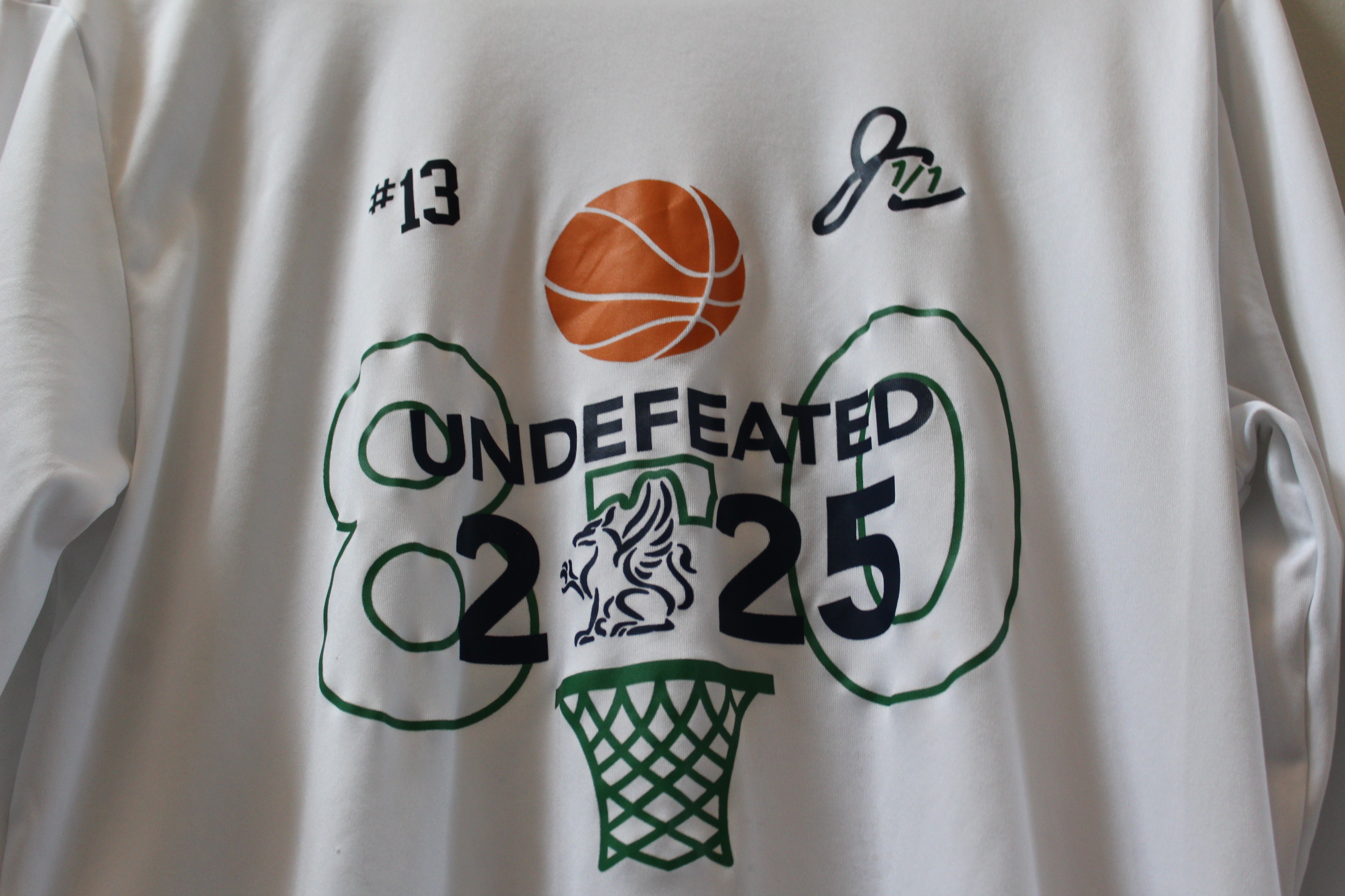 The long sleeve shirt features a stylish and modern design, with "8-0" in the background and "Undefeated 2025" in the front. These shirts were only given to players and coaches of the team, making them an even more special piece of clothing to remember the season. Each shirt has the player's/coach's number/role on the team, making each item different in that little way from all the other shirts.