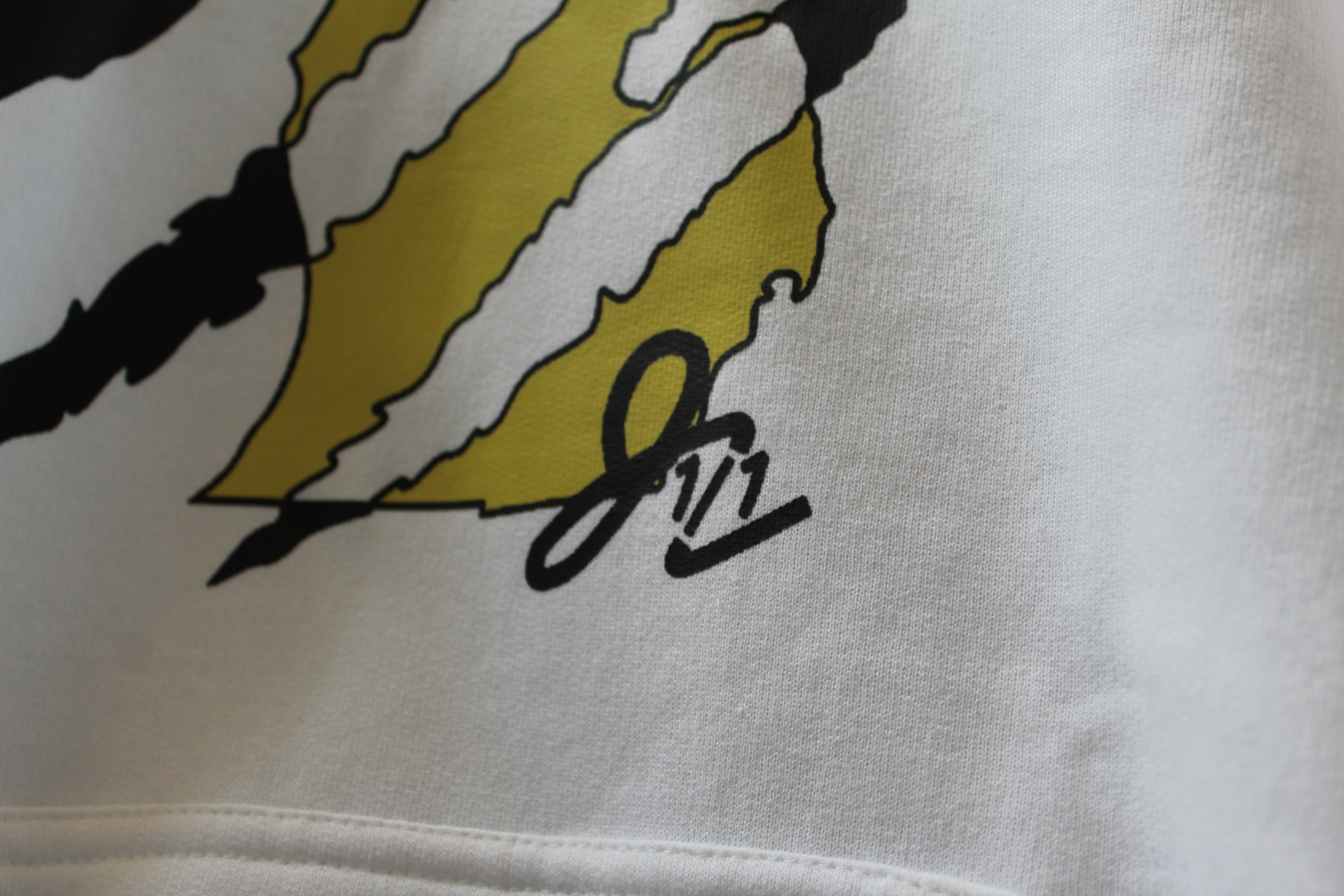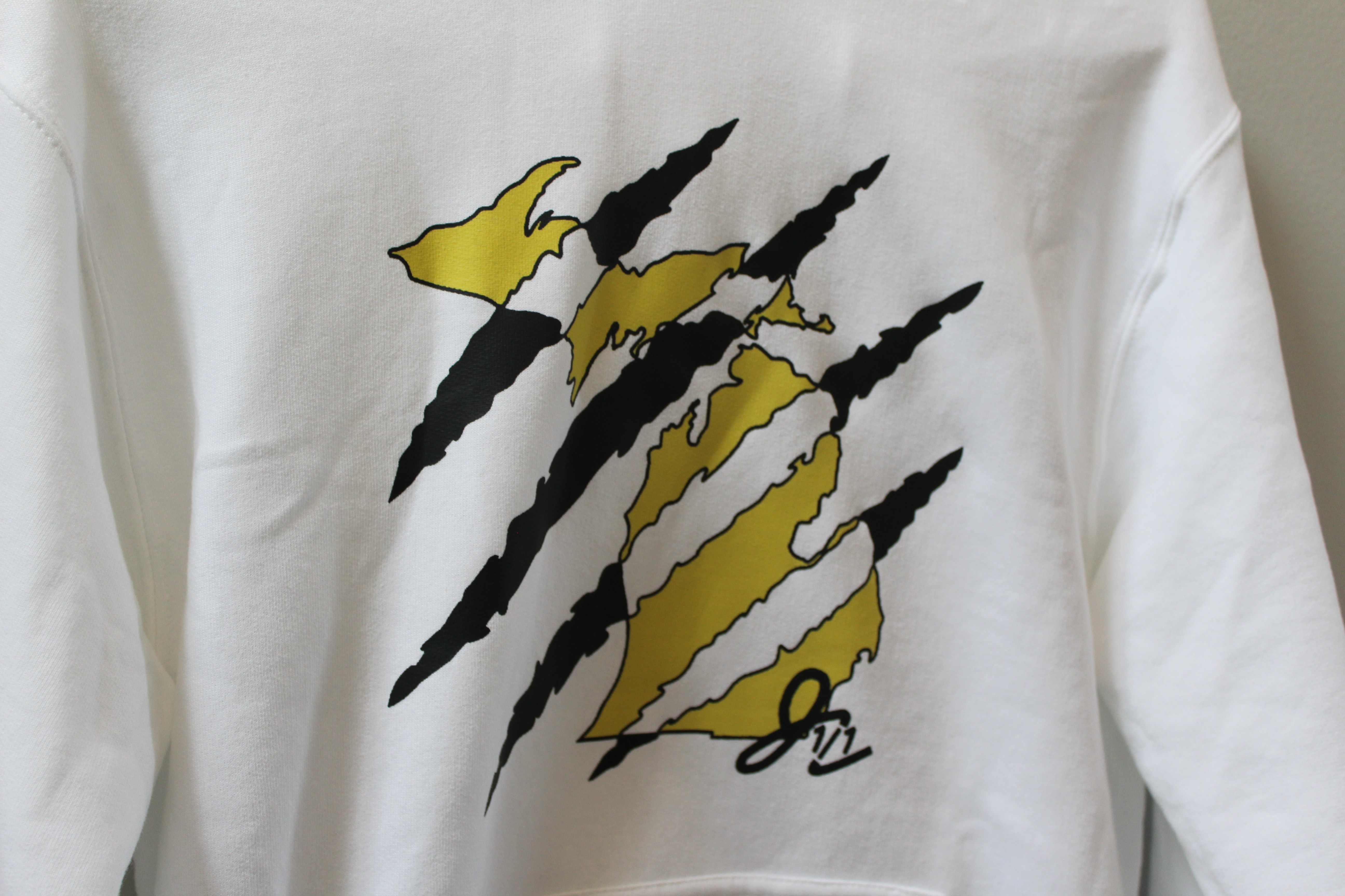 The hoodie features a striking design of the state of Michigan in gold, highlighted by bold black claw marks slashing across the front, adding a modern and edgy twist to classic state pride. Each hoodie is individually numbered, making every item truly one of one.
